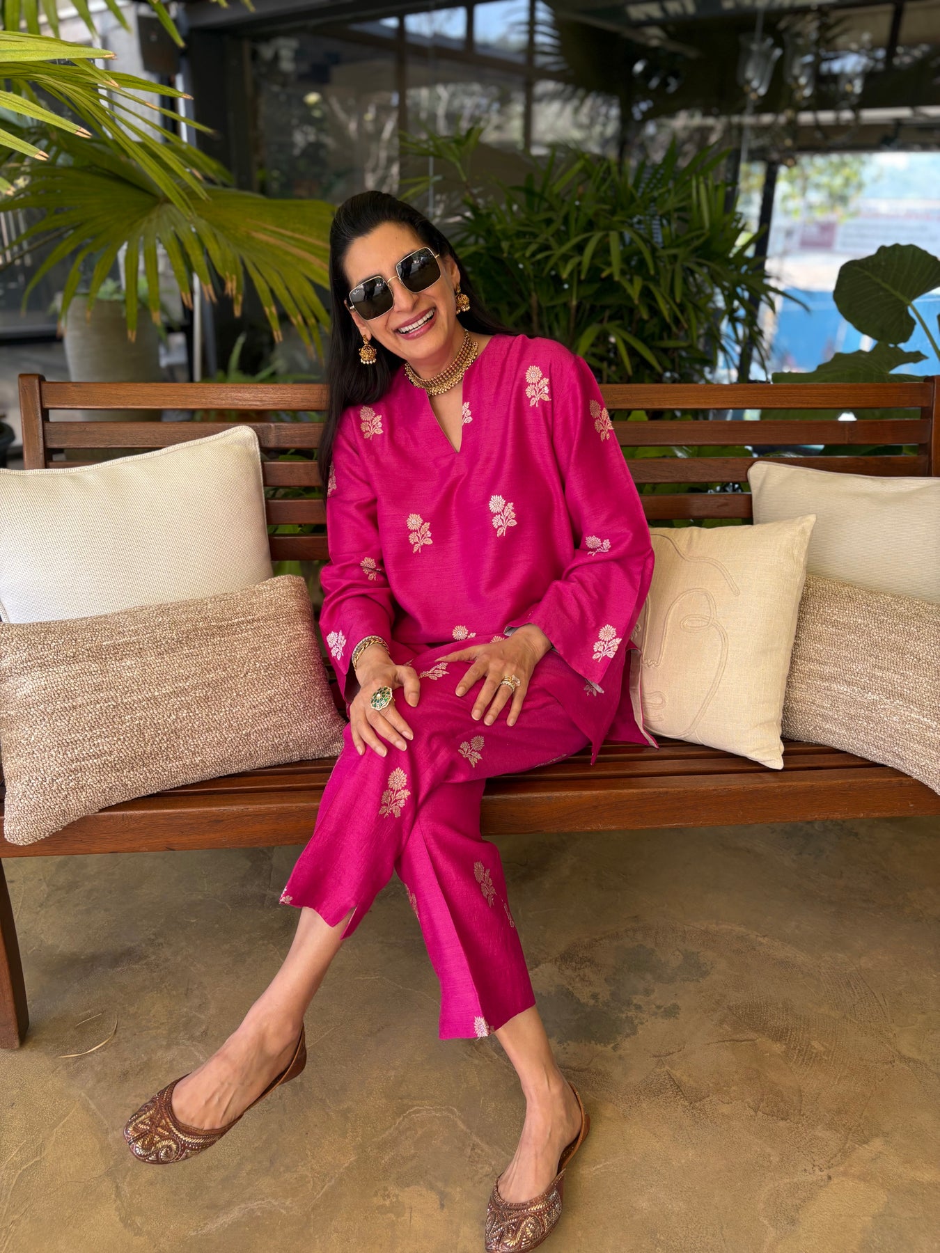 Banarasi Short Tunic with Narrow Pant Co-Ord Set - Pink