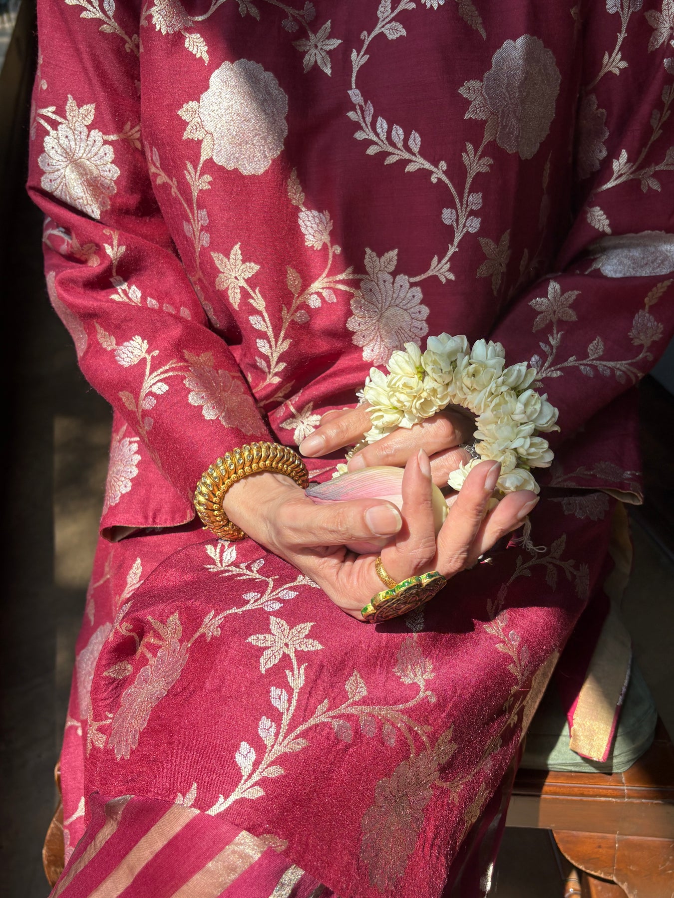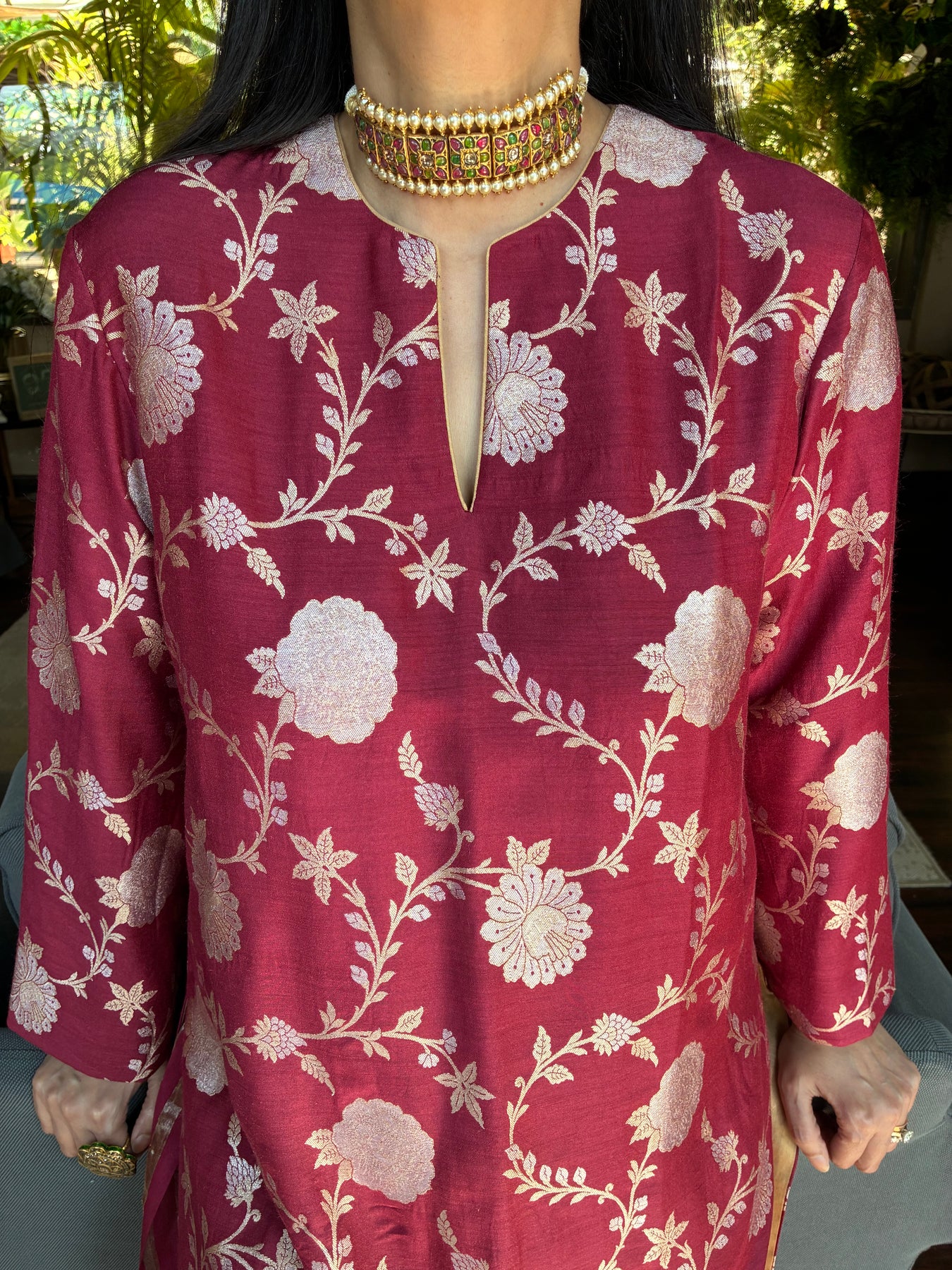 Banarasi Kurti with Farshi Salwar - Burgundy