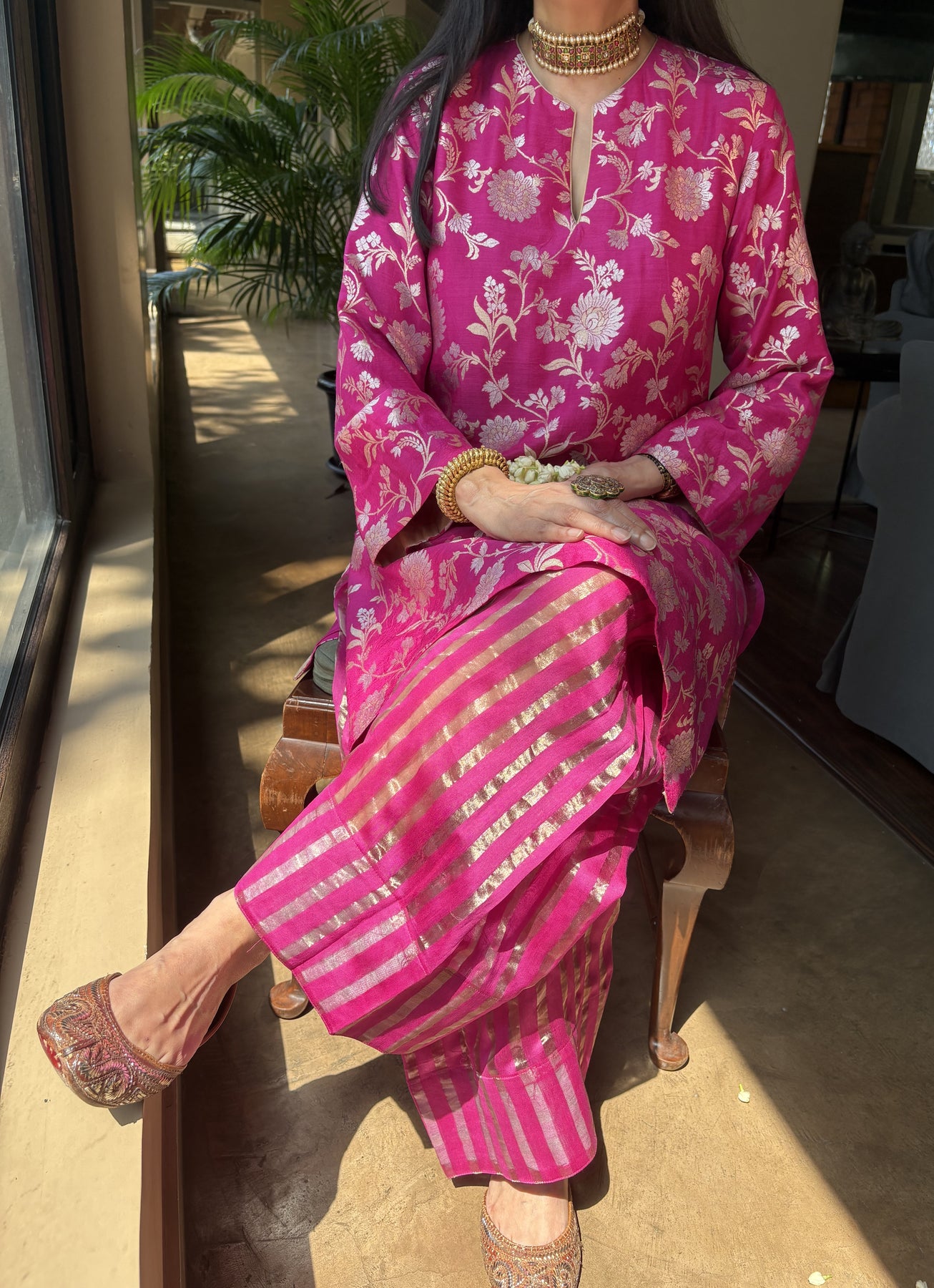 Banarasi Kurti with Farshi Salwar - Fuchsia Pink